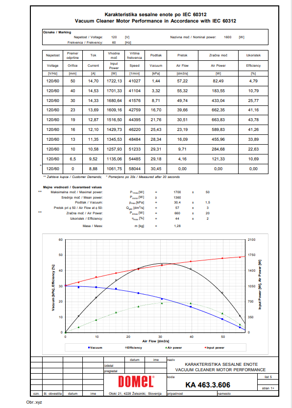 Fiche technique du moteur Domel à flux traversant 463.3.606 120V (TMTFD660)